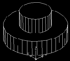 Теперь постройте окружность с центром в точке с координатами 0,0 и радиусом 200 мм. Если у точки центра координата Z отсутствует, то значение Z берется равным текущему уровню (т. е. 250 мм). В результате, во-первых, построится не окружность, а еще один цилиндр, поскольку задана ненулевая высота, а во-вторых, одно основание цилиндра попадет в плоскость нижнего основания первого цилиндра, а второе основание будет лежать в плоскости с уровнем 150 мм (т. к. к текущему уровню 250 прибавляется высота выдавливания, т. е. —100). Можно немного упростить себе задачу построения цилиндра, если при задании центра окружности воспользоваться функцией объектной привязки Center (Центр) к центру нижнего основания существующего цилиндра. В этом случае точка центра вычислилась бы сразу как трехмерная.